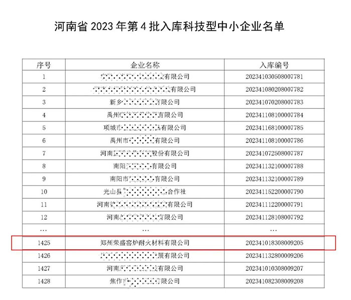 近日,根據(jù)科技部、財政部、稅務(wù)總局《科技型中小企業(yè)評價辦法》和《科技型中小企業(yè)評價服務(wù)工作指引》的有關(guān)規(guī)定,經(jīng)評估機構(gòu)的嚴格審核,鄭州榮盛窯爐耐火材料有限公司成功入庫“科技型中小企業(yè)”。這是榮盛耐材在自主創(chuàng)新、自主研發(fā)的進程中取得的又一豐碩成果。