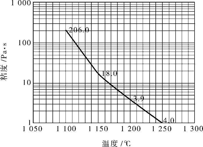 經(jīng)過試驗,向試驗煤樣中加入當?shù)厣衬械纳匙舆M行堿酸比例的調(diào)整。通過試驗可知,當向試驗煤樣中加入相當于煤灰分40%的沙子時,煤的粘溫特性得到了改善,灰熔點同時也得到了降低,粘溫特性如圖1。