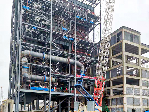 循環(huán)流化床鍋爐所燃燒物料的循環(huán)燃燒路徑:煤粉(一般用粒度0~10mm)和石灰石粉經(jīng)送料器送入流態(tài)化床燃燒室(密相區(qū)),燃料在此區(qū)沸騰燃燒。煙氣上升,經(jīng)稀相區(qū)至分離器入口進(jìn)入旋風(fēng)分離器,粗顆粒下沉經(jīng)回料閥返回燃燒室再次燃燒。煙氣挾帶飛灰上升經(jīng)過(guò)對(duì)流煙道進(jìn)入外置換熱器。耐火材料主要襯砌在燃燒室、頂棚、分離器入口、高溫旋風(fēng)分離器及回料閥等處。