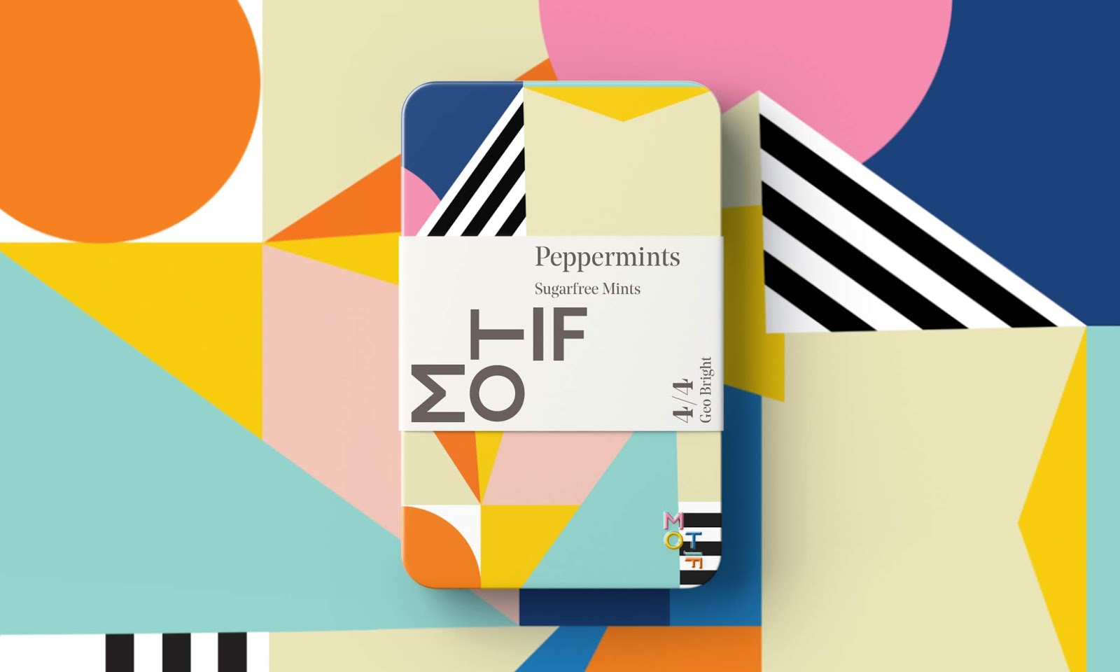 Motif薄荷糖包裝設(shè)計(jì),使用抽象的幾何元素與風(fēng)景人物進(jìn)行換位的方式,突出了薄荷糖,口味刺激多變的特點(diǎn)。