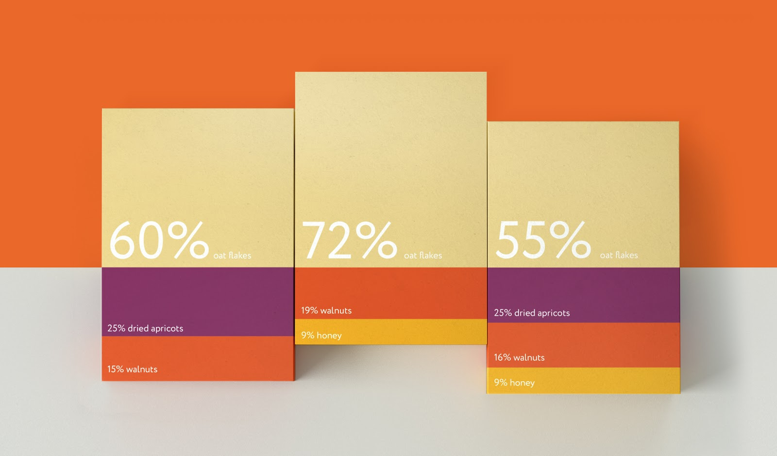 整體設計非常簡潔,大膽亮麗的色彩,在包裝上還標注了三明治中的營養成分,留白的“視覺窗口”將產品的原料展現在消費者眼前,給消費者創建了很好的觸覺體驗,使產品更加真材實料,給人留下一種奇特的心理感受。