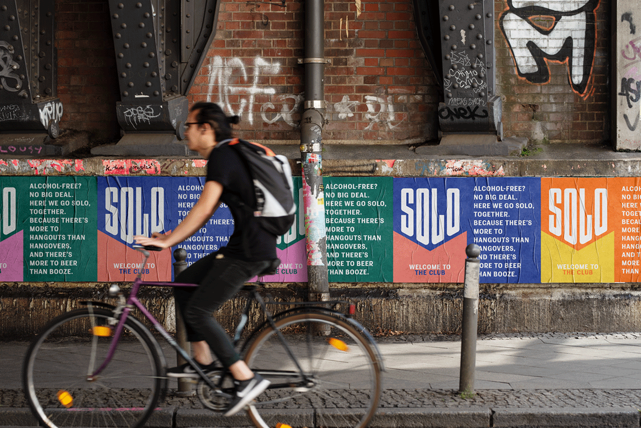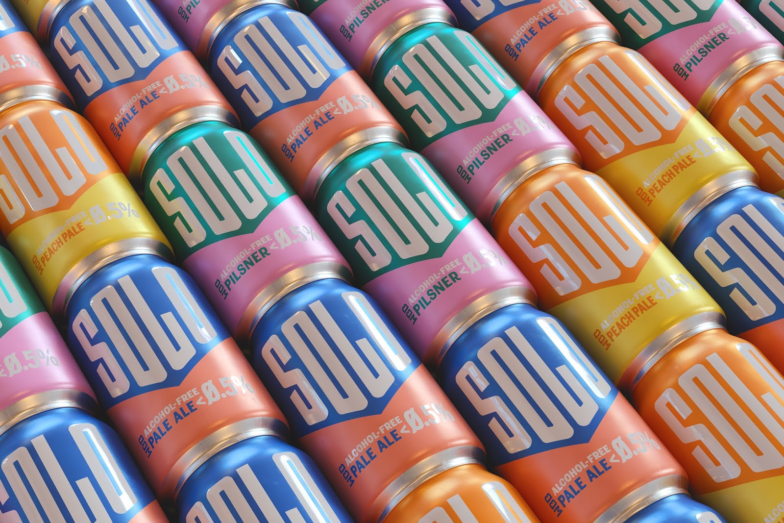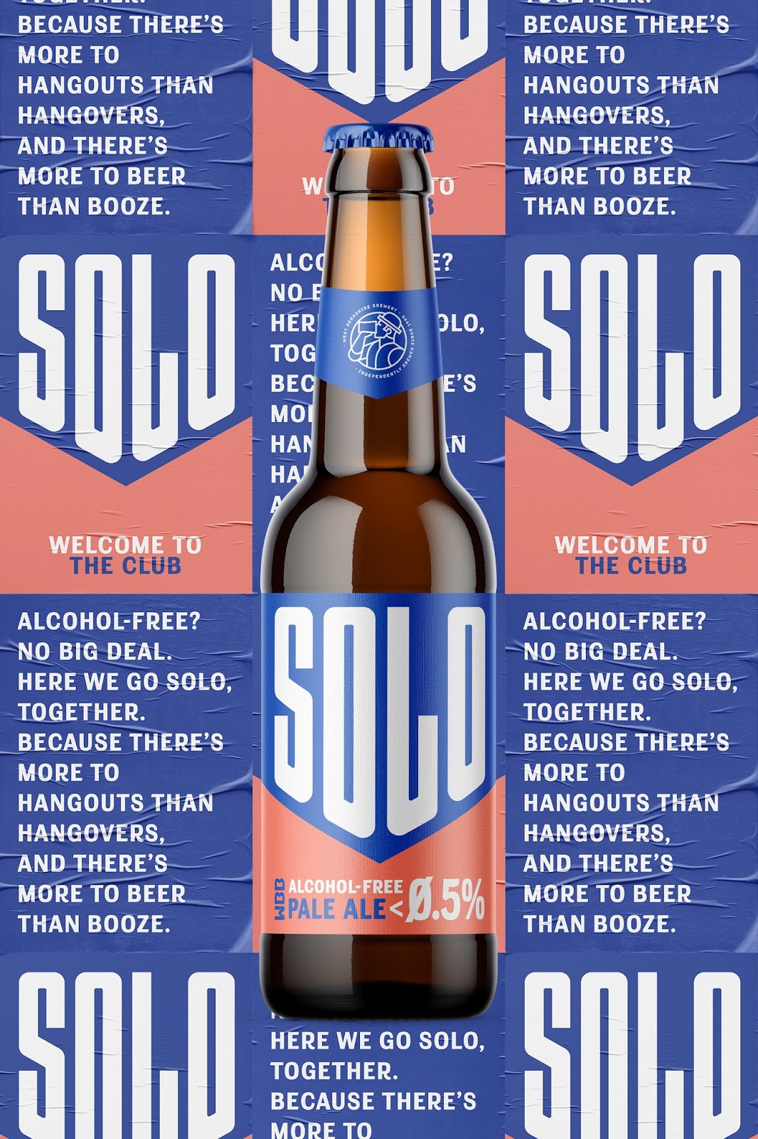 Solo無酒精啤酒包裝,三個關(guān)鍵詞運(yùn)動感,下箭頭,對比色。抓住了人們心智厭惡混亂的特點(diǎn),簡潔明了的描述了產(chǎn)品賣點(diǎn)無酒精淡啤,通過向下的箭頭不斷暗示消費(fèi)者酒精度數(shù)已經(jīng)下降到零,對比色區(qū)分信息,增強(qiáng)識別性。