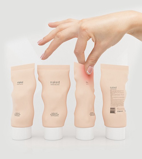 俄羅斯設(shè)計(jì)師neretin stas為一家化妝品與護(hù)膚產(chǎn)品品牌設(shè)計(jì)了一種交互式的包裝。這些容器清楚地反映出了它們的主要用途,裸露地站在使用者面前,稚嫩的膚色與柔和的曲線像極了人類的身體與肉體。當(dāng)人們接觸到這些包裝的時(shí)候,在發(fā)生接觸的位置會(huì)發(fā)生細(xì)微的變化,右側(cè)會(huì)發(fā)光變色,這是因?yàn)榘b的表面涂有遇熱變色的涂漆,使其對(duì)熱更加敏感,同時(shí)也反映了人類的接觸。能夠?qū)⒏惺艿降男咔优c愉快清楚地表現(xiàn)出來(lái),展示出了親昵的創(chuàng)意概念。